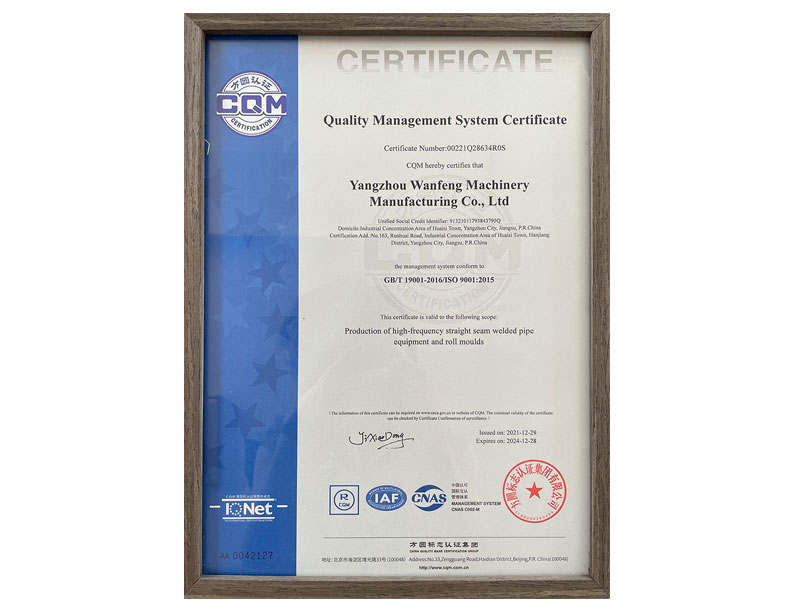 扬州万丰机械制造有限公司坐落于扬州北郊槐泗工业园区,占地25000平方米,交通便利,是集开发、制造、销售为一 体的焊管机组、模具制造企业。主要生产WF系列高频焊管机组;BG系列不锈钢焊管机组;GW系列型材冷弯成型机组;CQ系列车圈机以及各种焊管模具(12机组至508机组)型材模具。采用ISO9001: 2000国际质量标准,拥有完善的质量保证体系、严格的管理制度、先进的检测手段和完善的售后服务队伍。